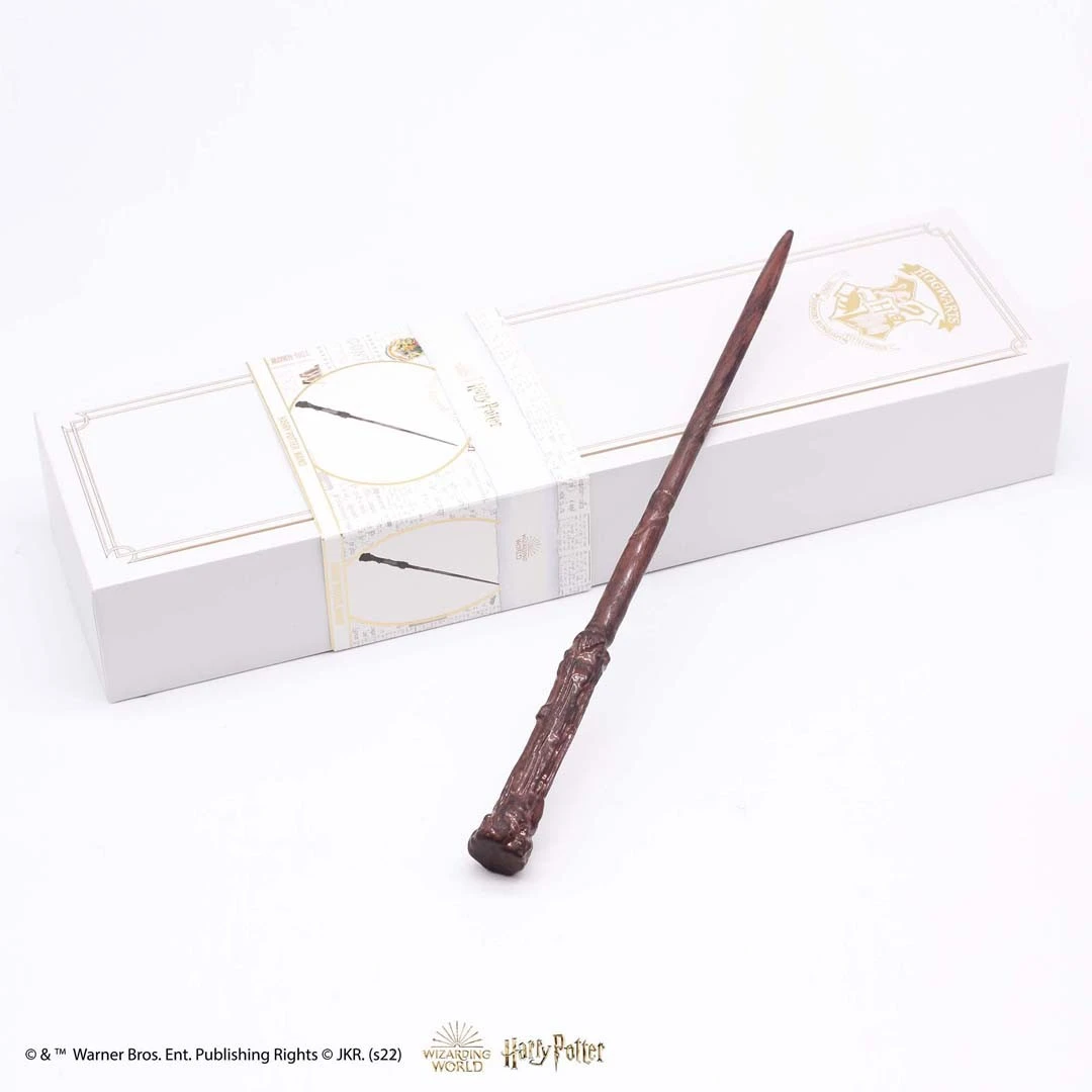 Cette réplique authentique et officielle est fabriquée en verre par Arribas, maison fondée en 1967 et partenaire historique de Disney, et peinte à la main pour imiter à la perfection la baguette magique qu’on aperçoit dans la saga. Elle mesure environ 28 cm.