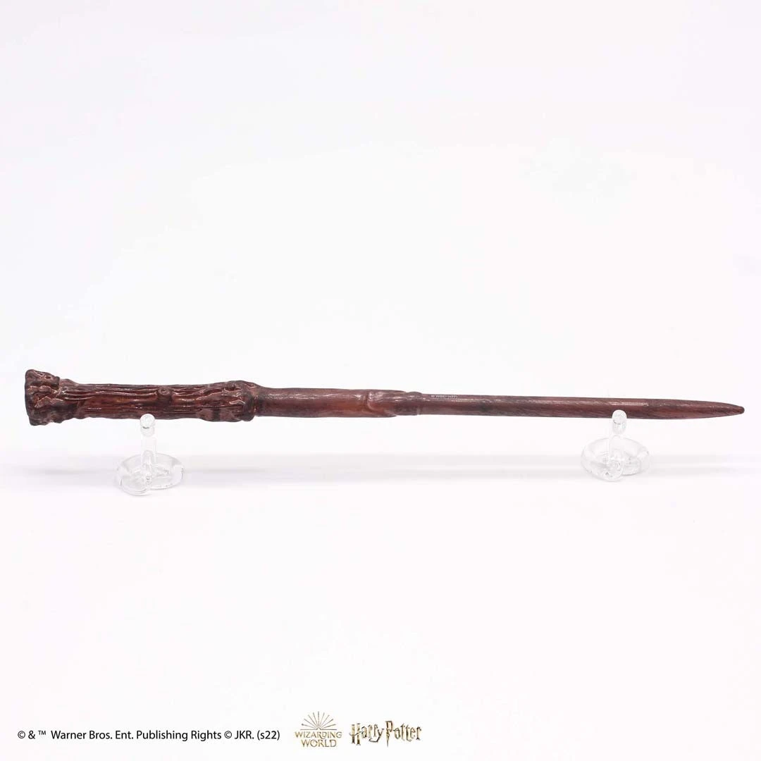 La baguette Harry Potter est sans doute la plus connue dans le monde moldu. Elle est composée de bois de houx et contient une plume de Phénix en son cœur. Et pas n’importe quel Phénix : Fumseck, qui aide Harry dans la Chambre des Secrets ! Ce Phénix a donné deux plumes : la seconde se trouve dans la baguette de Voldemort.