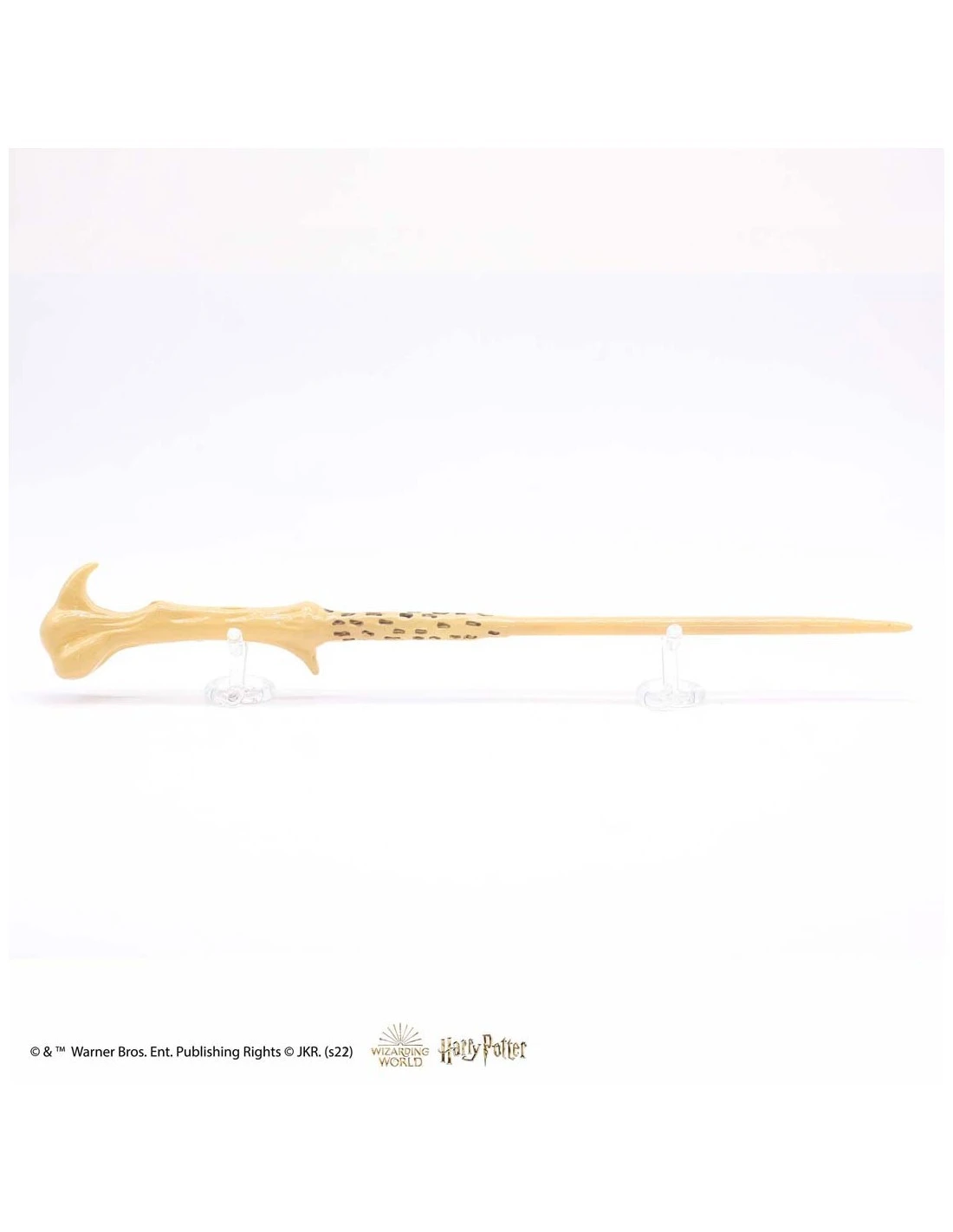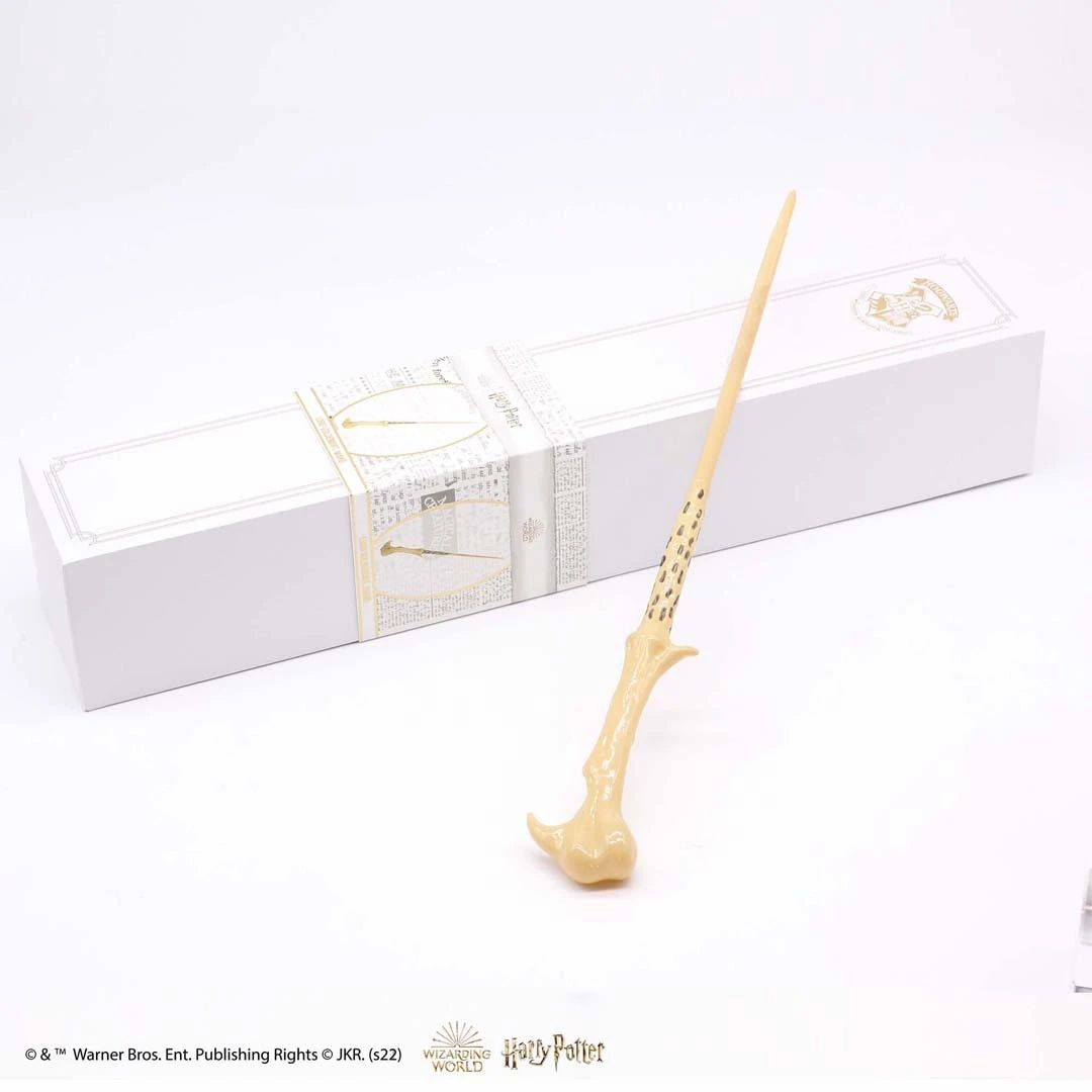 Fabriquée en verre par la manufacture Arribas, cette baguette imite, grâce à la peinture à la main, un bois blanc dont le manche ressemble plutôt à un os humain… N’est pas Voldemort qui veut ! Elle mesure 34 cm. Elle est livrée dans une boîte de collection “Arribas” sous licence officielle Harry Potter.