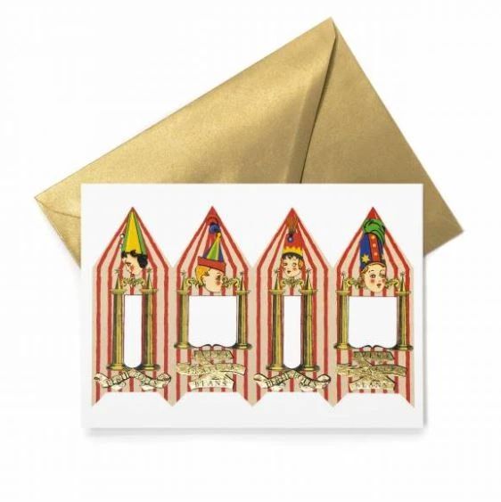 Carte de voeux à l’intérieur vierge pour y exprimer n’importe quel voeu: félicitations, anniversaire, mariage ou autres. Elle est vendue avec son envelloppe dorée sous blister.