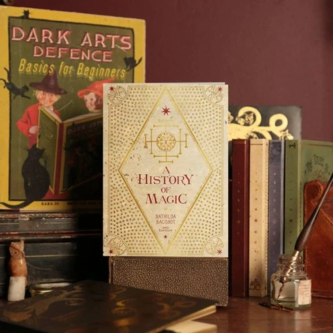 Miraphora Mina et Eduardo Lima ont conçu une grande gamme de livres pour Wizarding World, en leur donnant un aspect « vieilli », en ajoutant du texte à l’intérieur et même parfois en annotant des commentaires à la main pour leur donner une touche plus réelle. Ces livres font parti de la bibliothèque essentielle d’Hermione Granger™. Ecrit par Bathilda Tourdesac, ‘L’histoire de la magie’ fait parti des livres à avoir pour tout étudiant à Poudlard.