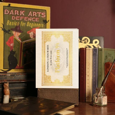 Cet artefact populaire est vu dans le premier film, Hagrid™ donne ce ticket de train à Harry et lui dit de se rendre à la plateforme 9/34 pour embarquer à bord du Poudlard Express qui amène les élèves de Londres King’s Cross à l’école de Magie, Poudlard.
