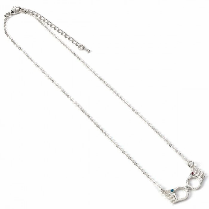 Ce collier lorgnospectres sur une chaîne délicate a des détails en cristal bleu et rose et est tout aussi magique que les lunettes Luna. Luna Lovegood est devenue célèbre pour avoir porté des lorgnospectres, des lunettes offertes dans le magazine chicaneur qui permettaient au porteur de voir des Nargoles.