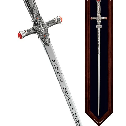 Sublime réplique de l’épée de Godric Gryffondor, légendaire épée de la maison Gryffondor fabriquée par le roi des Gobelins Ragnuk 1er. C’est l’une des quatre Reliques des Fondateurs de l’école Poudlard. Habituellement gardée dans une vitrine du bureau du Directeur, elle se présente aux élèves de Gryffondor qui s’en montrent dignes. Dans la Chambre des Secrets, l’épée de Gryffondor surgit du Choixpeau Magique pour aider Harry Potter à vaincre le Basilic.