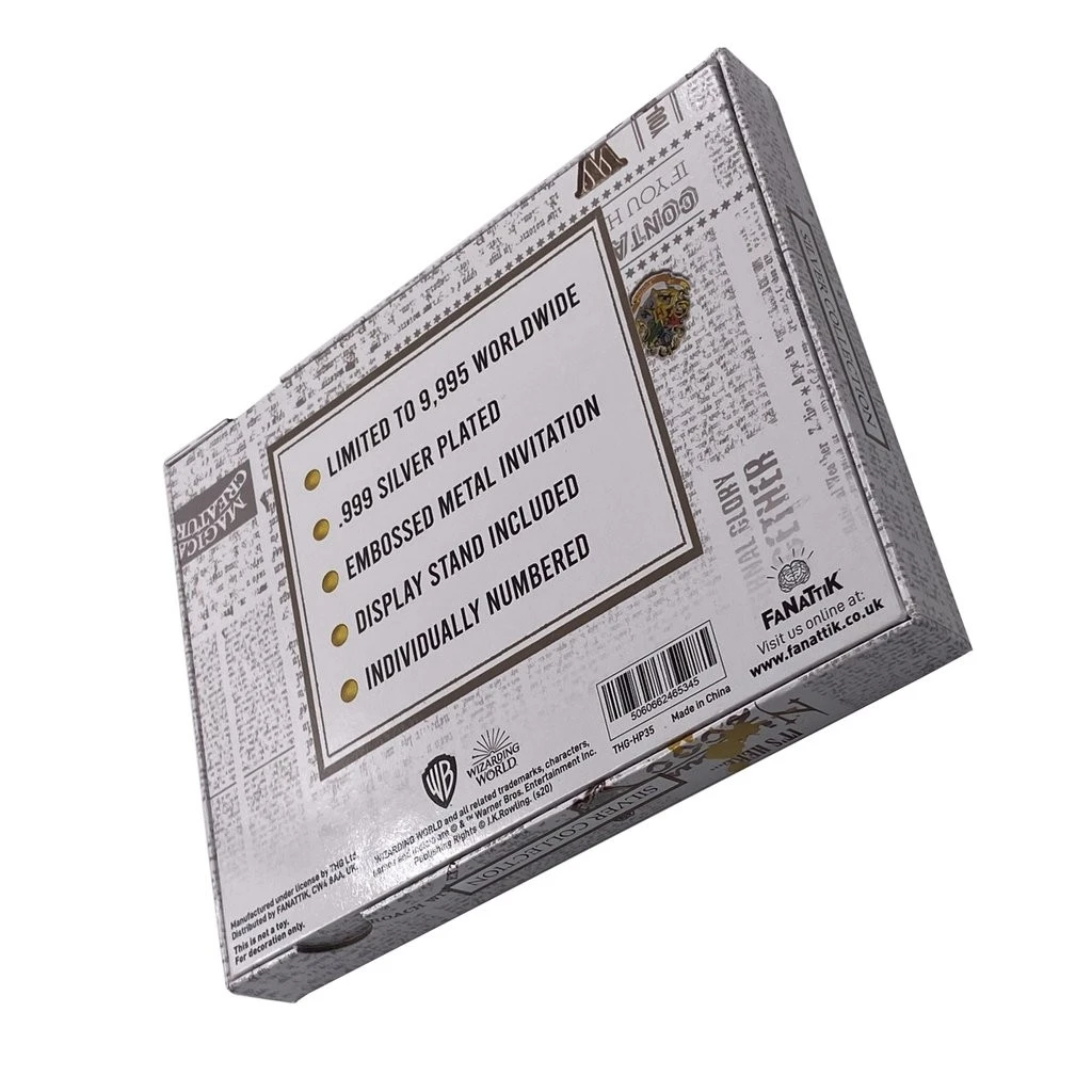 Cette réplique du tincket d’invitation au Bal de Noël (Yule Ball) plaqué argent .999 est un objet de collection Harry Potter sous licence officielle, limité à seulement 9995 dans le monde.
