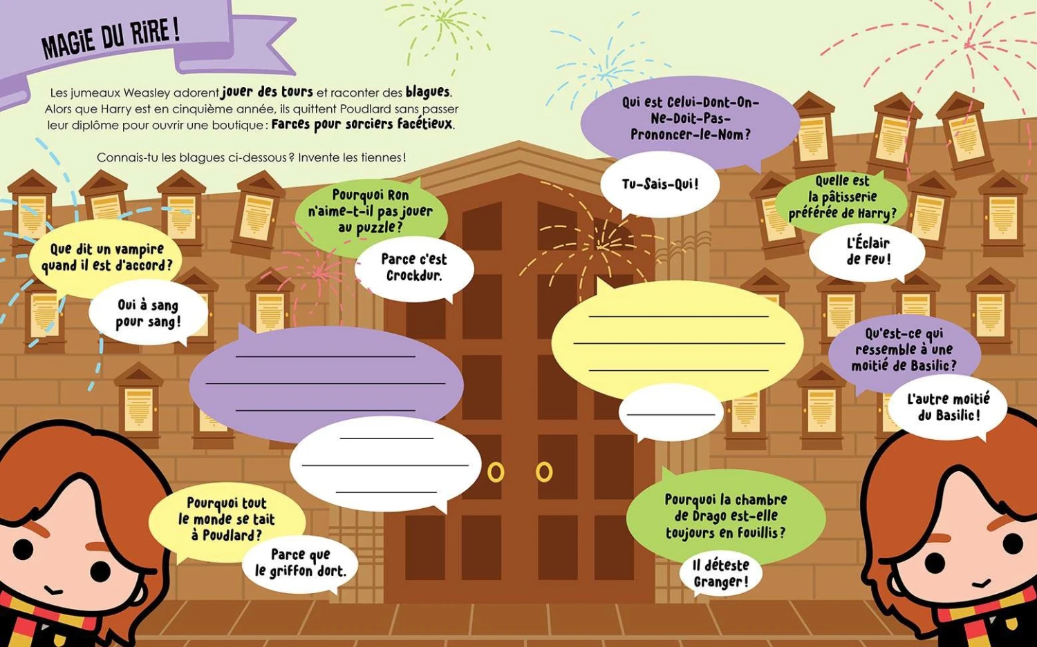 Grâce à ce livre d’activités plein de surprises, tu vas devenir un(e) véritable élève de la célèbre école de sorcellerie ! Choisis ta baguette magique, prépare ton voyage à bord du Poudlard Express et intègre ta maison : Gryffondor, Serdaigle, Poufsouffle ou Serpentard.