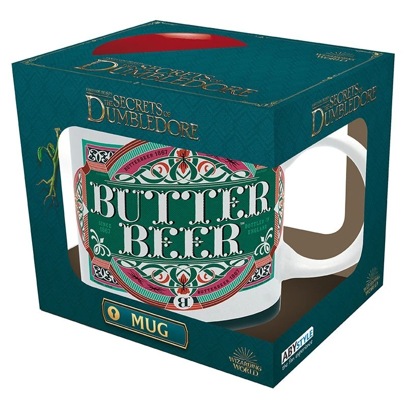 Un mug de 320ml décoré « Bière au beurre » sous licence officielle Les Animaux Fantastiques – Les Secrets de Dumbledore.