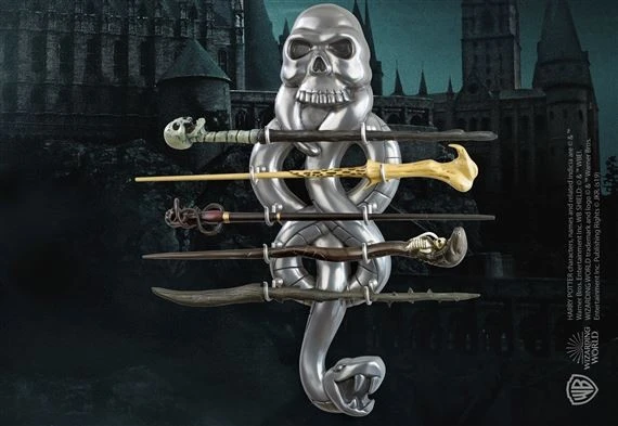 Prouvez votre loyauté aux forces du mal avec cet incroyable présentoir représentant la Marque des Ténèbres. Ce support magique comprend 5 baguettes :