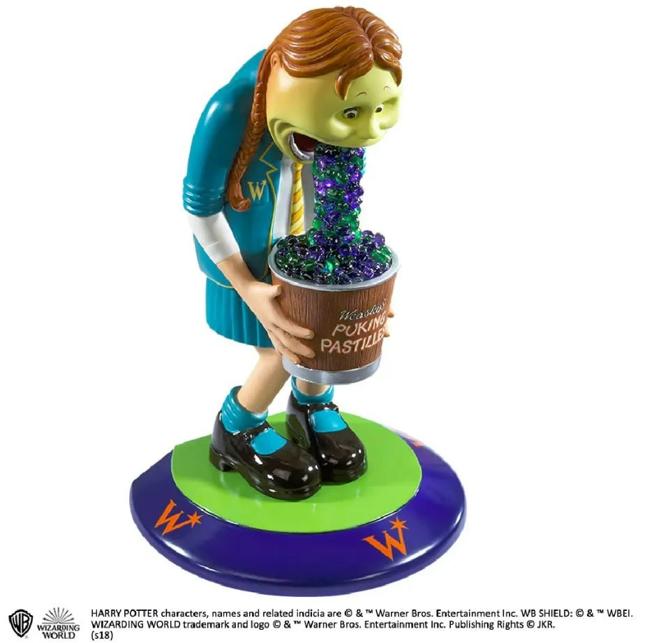 Mieux vaut ne pas les tester… Mais pour votre bibliothèque, il faut avouer que ça a du style ! Ce serre-livres Weasley original représente une petite fille subissant les effets des pastilles de gerbe, parfait pour se faire porter pâle et éviter le cours du Professeur Rogue !
