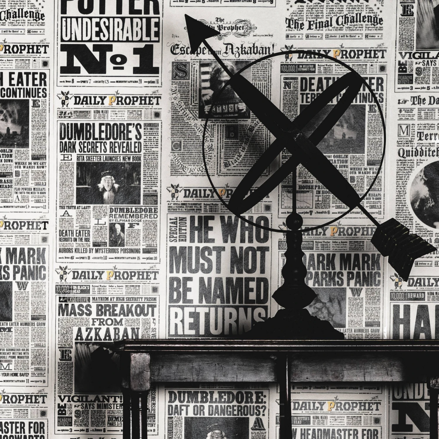 Papier peint non tissé de qualité supérieure, 180 g / m2, illustré de plusieurs célèbres articles de la Gazette du Ssorcier (The Daily Prophet). Taille du rouleau: 0,5 x 10 m.
