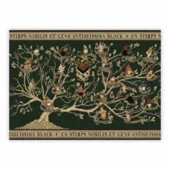 Poster de haute qualité illustrant l’un des nombreux graphismes réalisés par le studio MinaLima, les graphistes ayant donné au monde magique de JK Rowling et son oeuvre de Harry Potter les illustrations incroyables que l’on connait tous aujourd’hui au sein des films. Parmi elles certaines devenues mythiques, notamment la Carte du Maraudeur (Marauders Map), la Gazette du Sorcier (Daily Prophet), la Tapisserie de lla Famille Black, les couvertures des livres d’apprentissage de Poudlard, et bien d’autres.