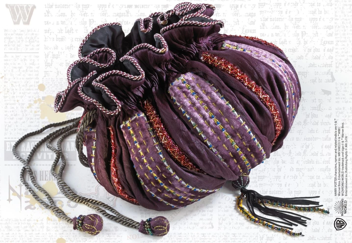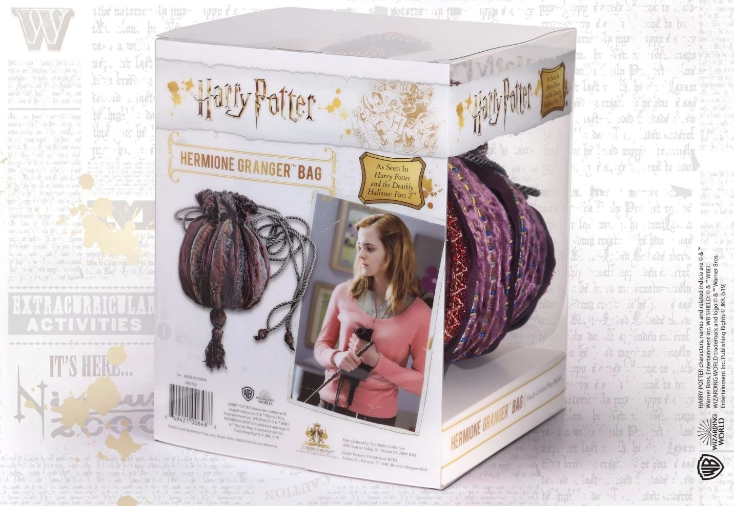 Hermione le porte pour la première fois lors du mariage de Bill Weasley et Fleur Delacour. Ce sac en perles, à l’apparence particulièrement petit, leur a maintes fois sauvé la vie pendant leur fuite.