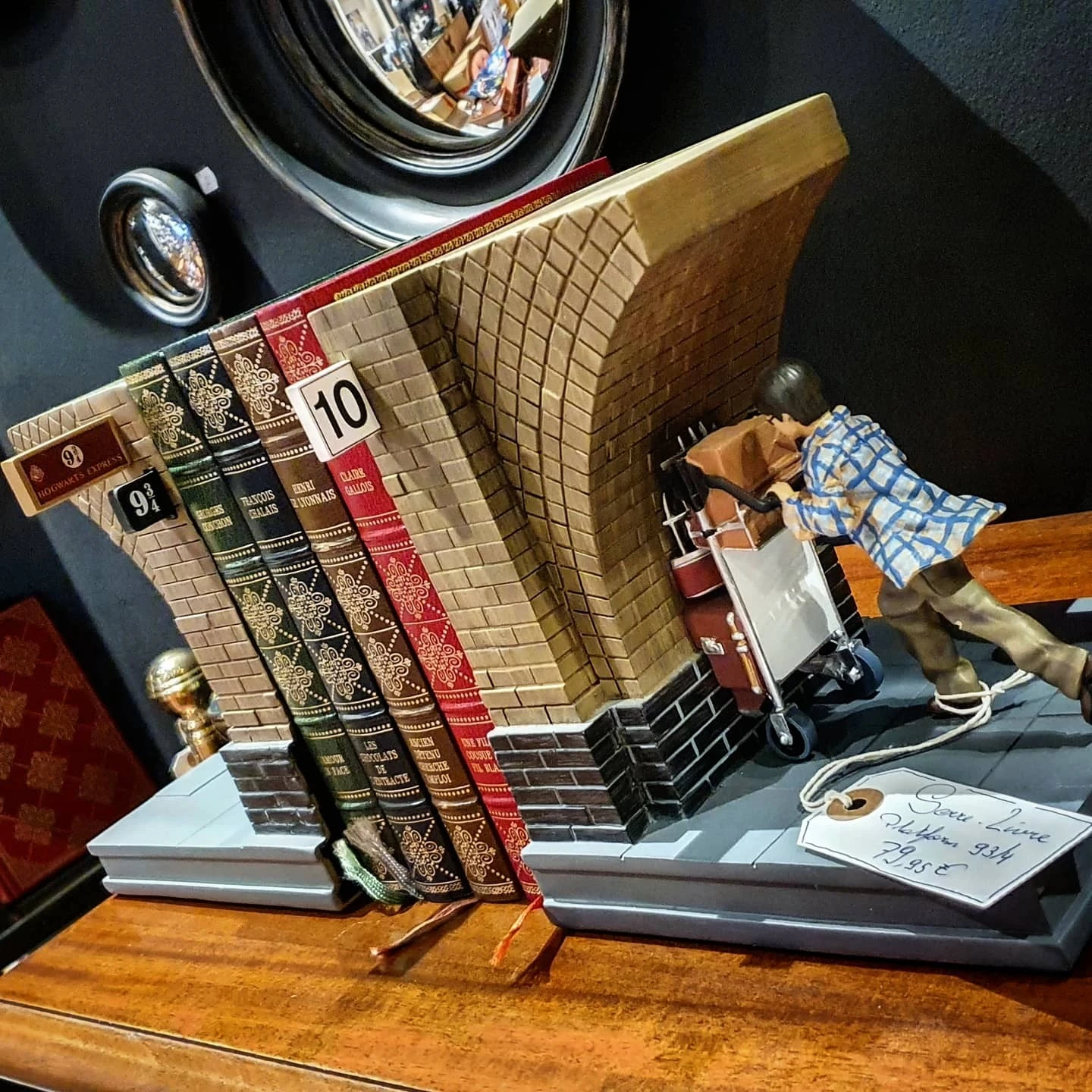 Magiquement cachée derrière la barrière entre les quais moldus neuf et dix, la plate-forme 9 3/4. C’est là que les élèves de l’école de sorcellerie de Poudlard montent à bord du Poudlard Express.