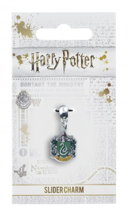 Breloque Serpentard officielle sur une bélière plaquée argent. Ce charme mesure environ 15 mm x 20 mm et est livré sur l’emballage officiel de marque Harry Potter.